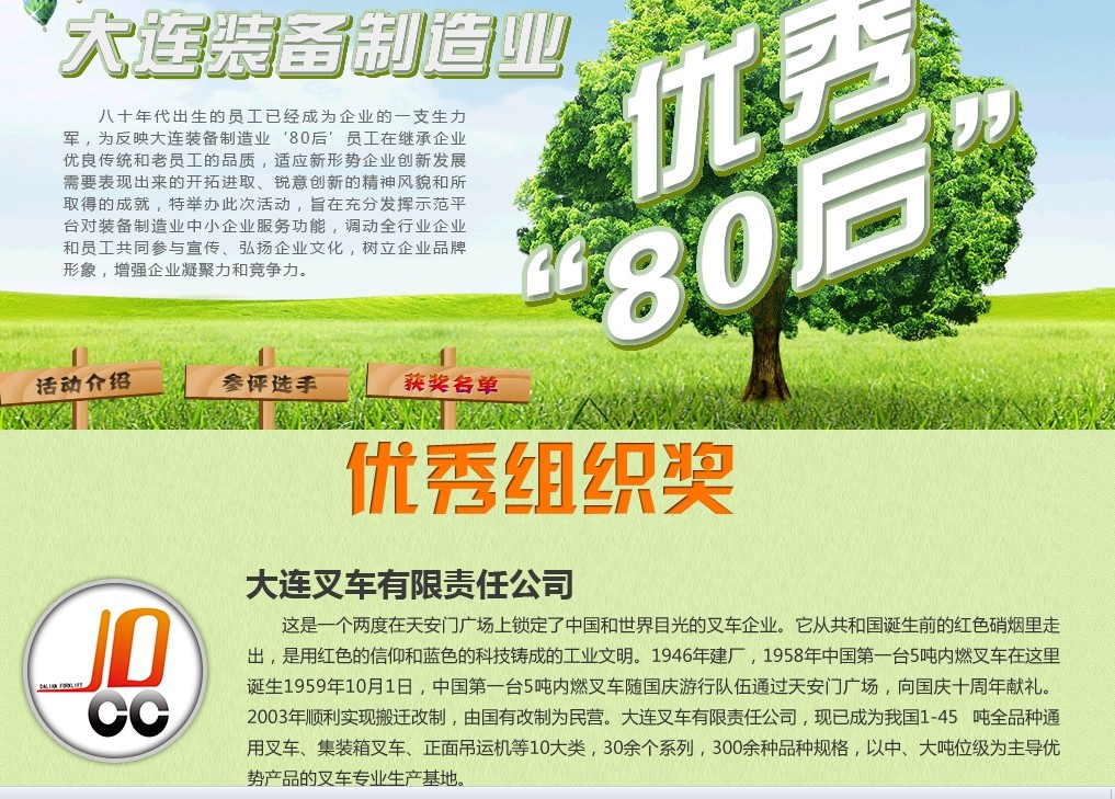 同時(shí)組織參評(píng)的13家企業(yè)有3家獲得活動(dòng)組委會(huì)表彰,我公司榮登榜首,被評(píng)為“大連裝備制造業(yè)優(yōu)秀‘80后’評(píng)選活動(dòng)優(yōu)秀組織獎(jiǎng)”!