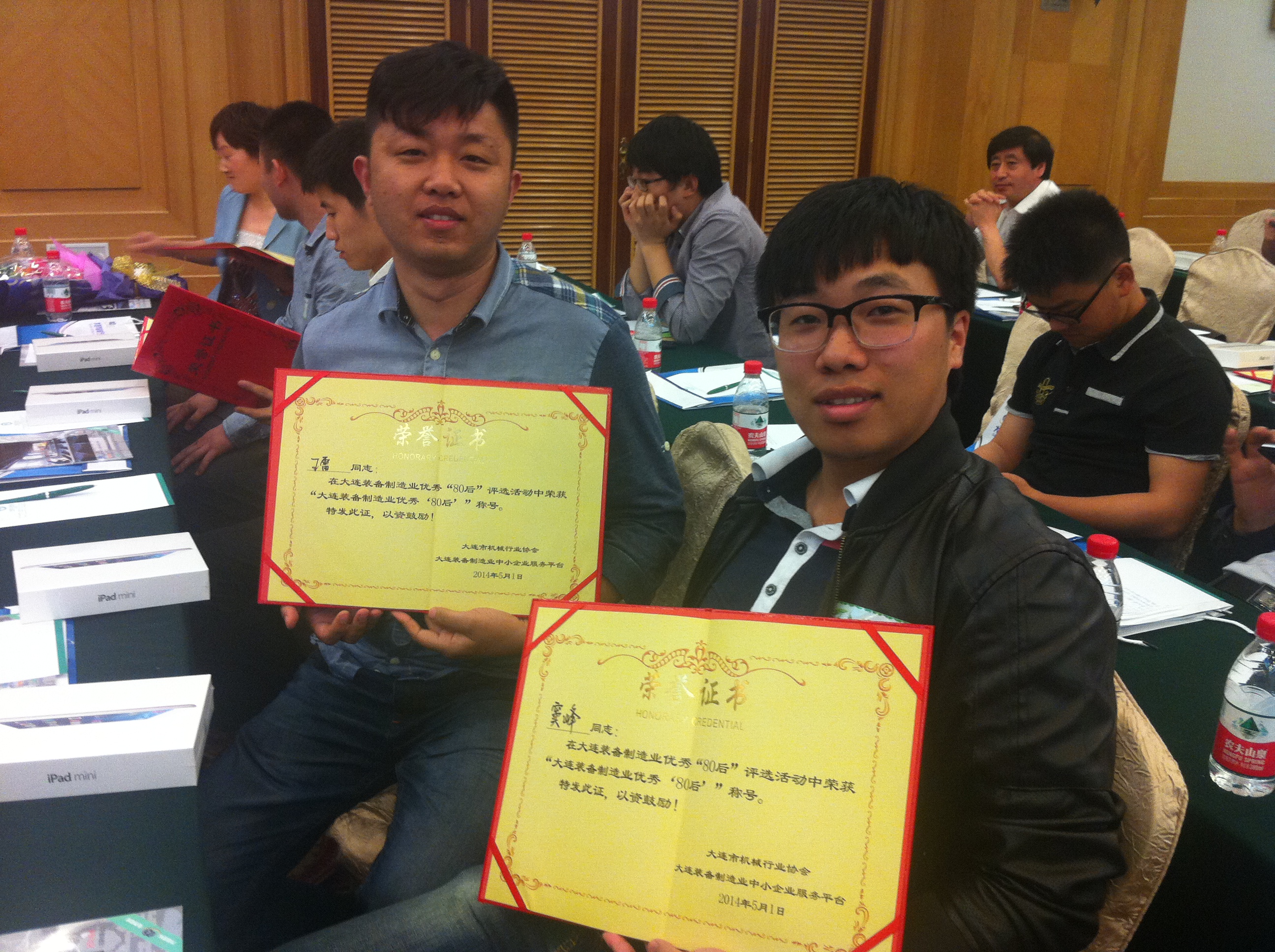 我公司7名“80后”員工入圍參選,其中:信息中心王雷、生產(chǎn)管理中心竇峰排名前十,榮獲“大連市裝備制造業(yè)優(yōu)秀‘80后’榮譽(yù)稱(chēng)號(hào)”,并分別獲得榮譽(yù)證書(shū)及mini ipad一部;總裝車(chē)間孫偉、機(jī)加車(chē)間舒陽(yáng)、內(nèi)燃機(jī)中心王野、張偉及工藝中心郭福承榮獲“大連裝備制造業(yè)優(yōu)秀‘80后’企業(yè)提名獎(jiǎng)”,并分別獲得榮譽(yù)證書(shū)及無(wú)線鼠標(biāo)鍵盤(pán)一套。