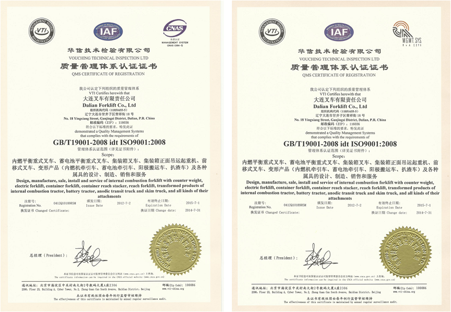 經(jīng)評(píng)審,按照GB/T19001-2008 idt ISO9001:2008標(biāo)準(zhǔn)的要求,公司質(zhì)量管理體系順利通過審核。在本次審核過程中,對(duì)公司質(zhì)量體系覆蓋范圍進(jìn)行了擴(kuò)容,增加了前移式叉車,規(guī)格型號(hào)為CQD20型(2.0t及以下)。
