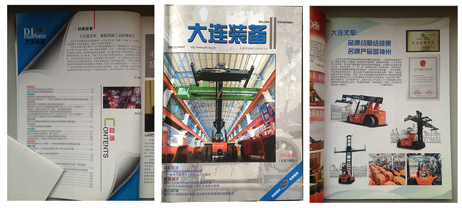 近期,在由大連市機械行業(yè)協(xié)會主辦發(fā)行的業(yè)內(nèi)雜志《大連裝備》中,大連叉車有限責(zé)任公司壓軸登場,出現(xiàn)在該雜志2014年末版的封面上?!洞筮B裝備》以“大連叉車:品牌戰(zhàn)略結(jié)碩果,名牌產(chǎn)品譽神州”和“大連叉車,挺起民族工業(yè)的脊梁”為題,在刊內(nèi)頭版對大連叉車進行了專題報道。